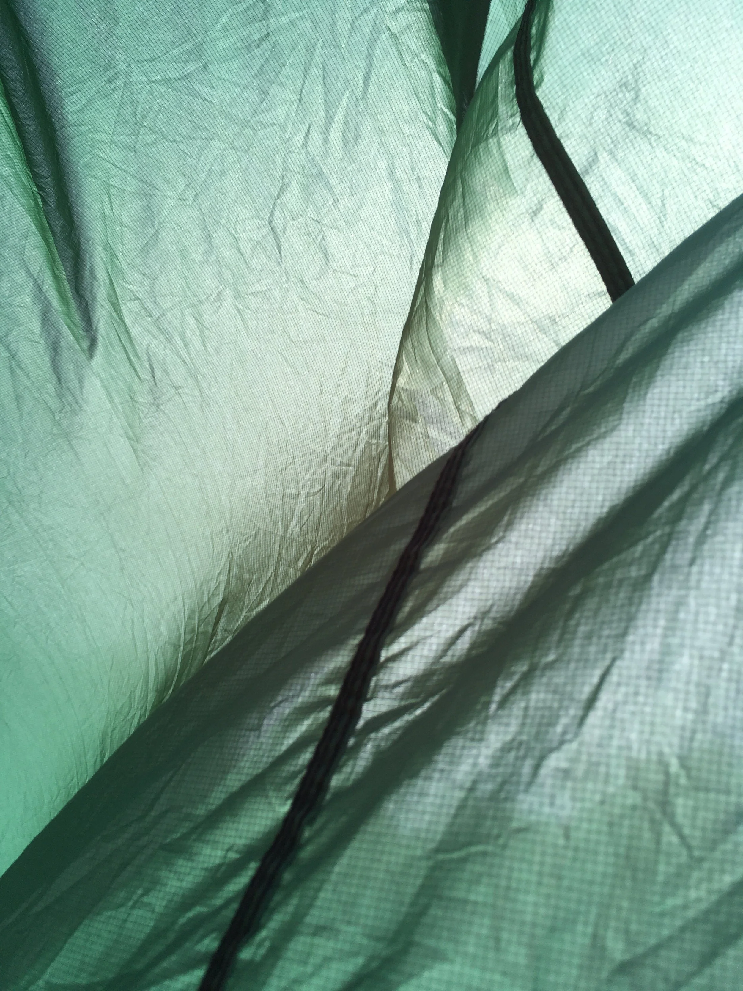 Roll-top stuff sack is integrated with one of the carabiners for faster setup and easier take-down